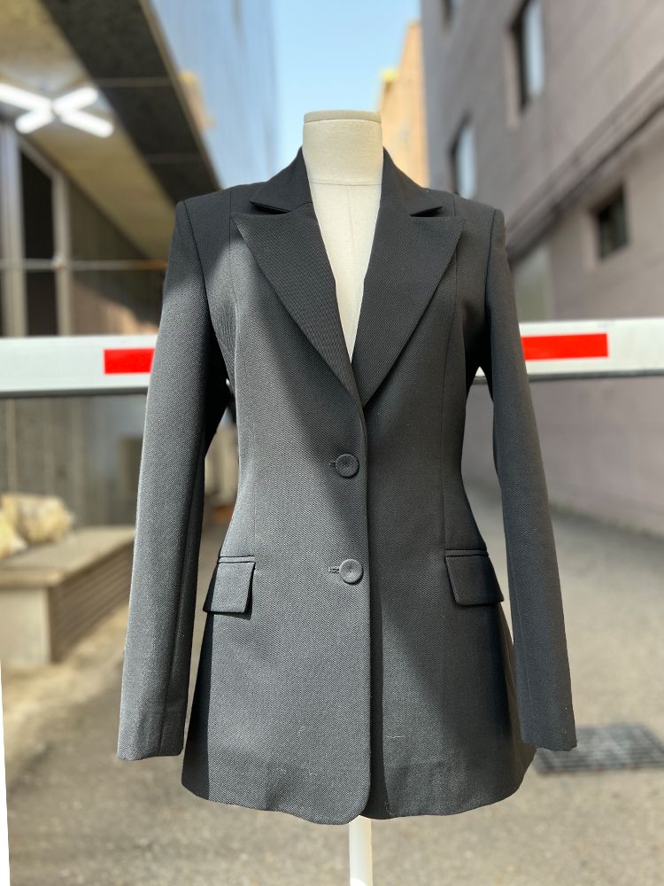 블랙, 슬림한 테일러드 핏의 블레이저 투버튼 자켓