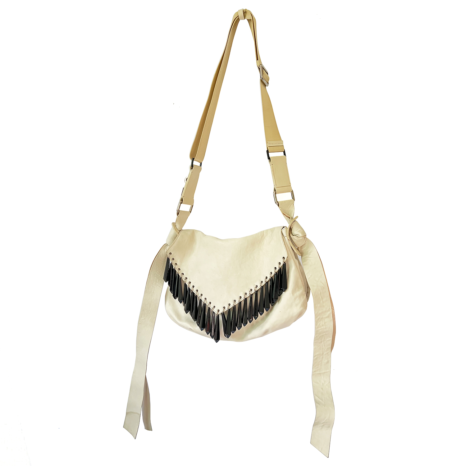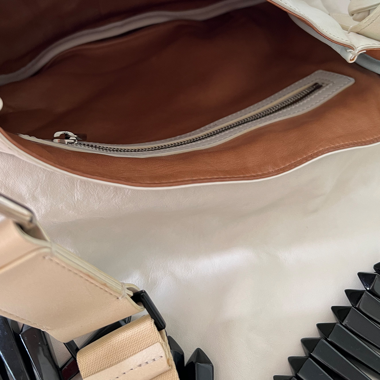 아이보리 톤의 밝은 가죽으로 약간 사용감이 느껴지는 컨디션입니다.
