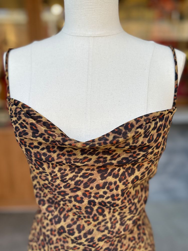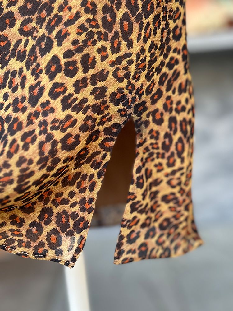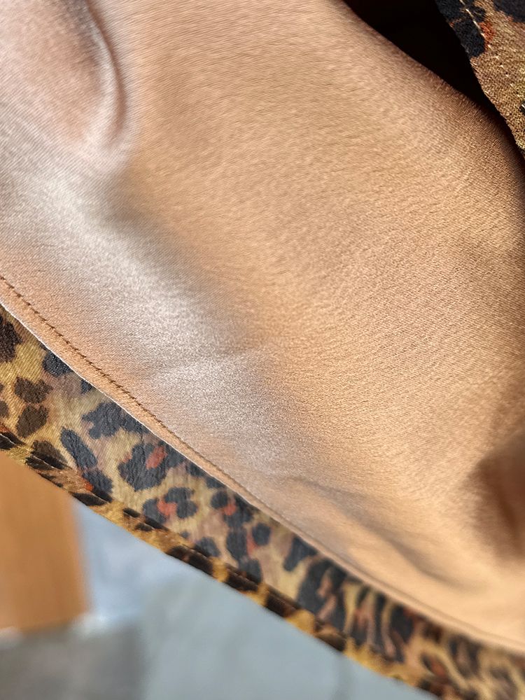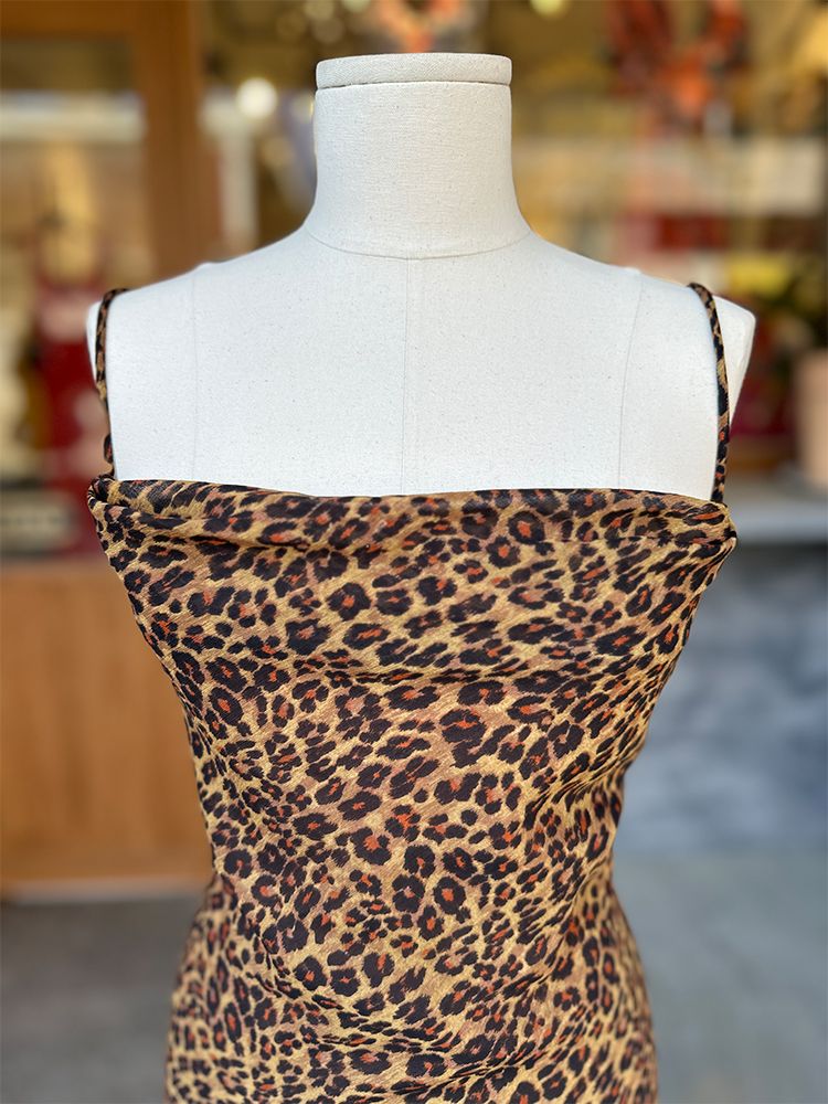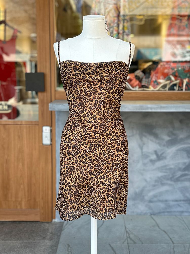 베이지, 레오파드 패턴, 백오픈,레이어드 스트링, 앞 사이드 슬릿, 안감있음,