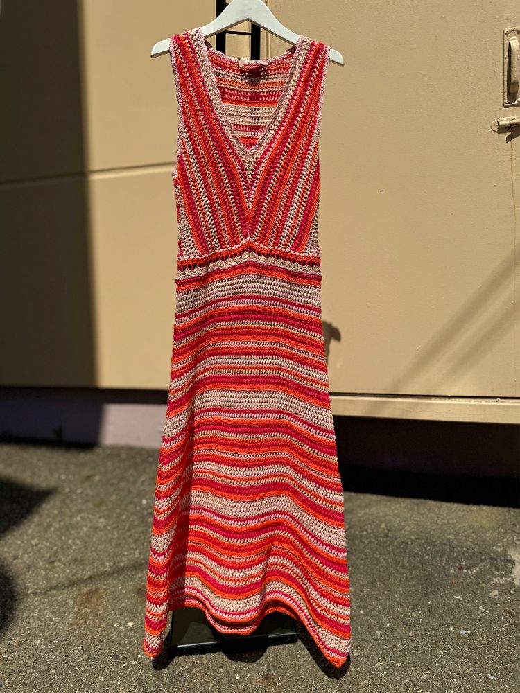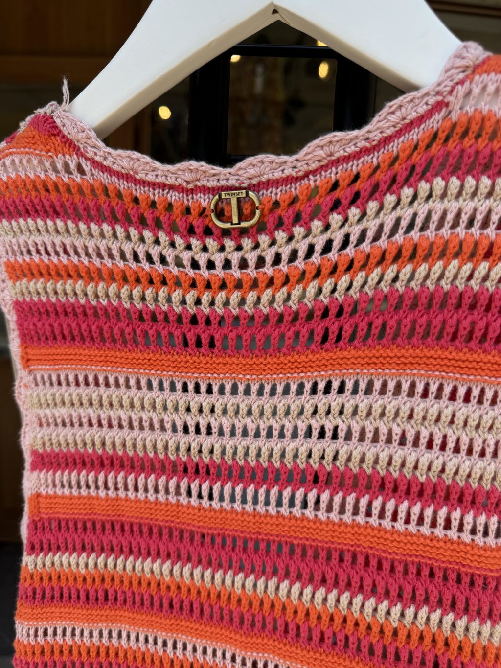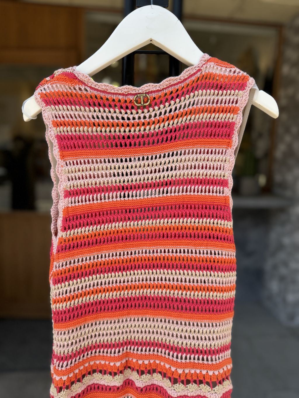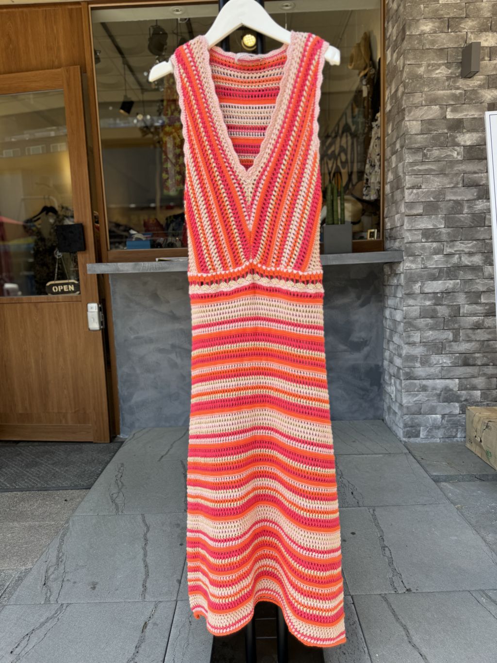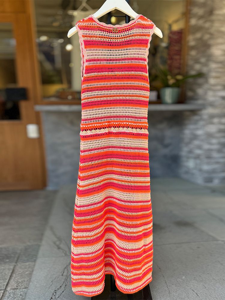 트윈셋 핑크 톤앤톤 스트라이프 니트 롱 드레스