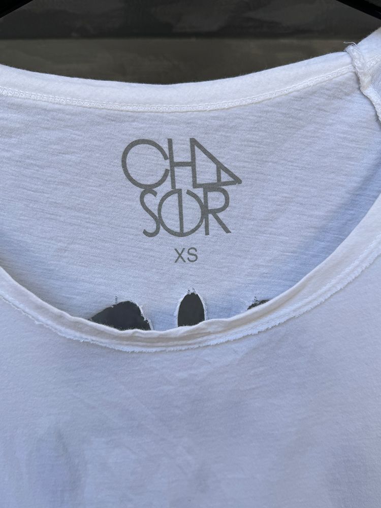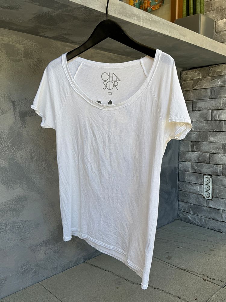 체이서 백 디자인 컷팅 숏 슬리브 티셔츠