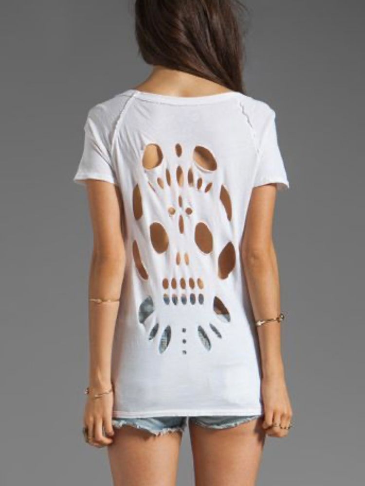 화이트, 백 디자인 컷팅 디테일, 넓은 네크라인, 슬림한 핏, 숏슬리브 티셔츠