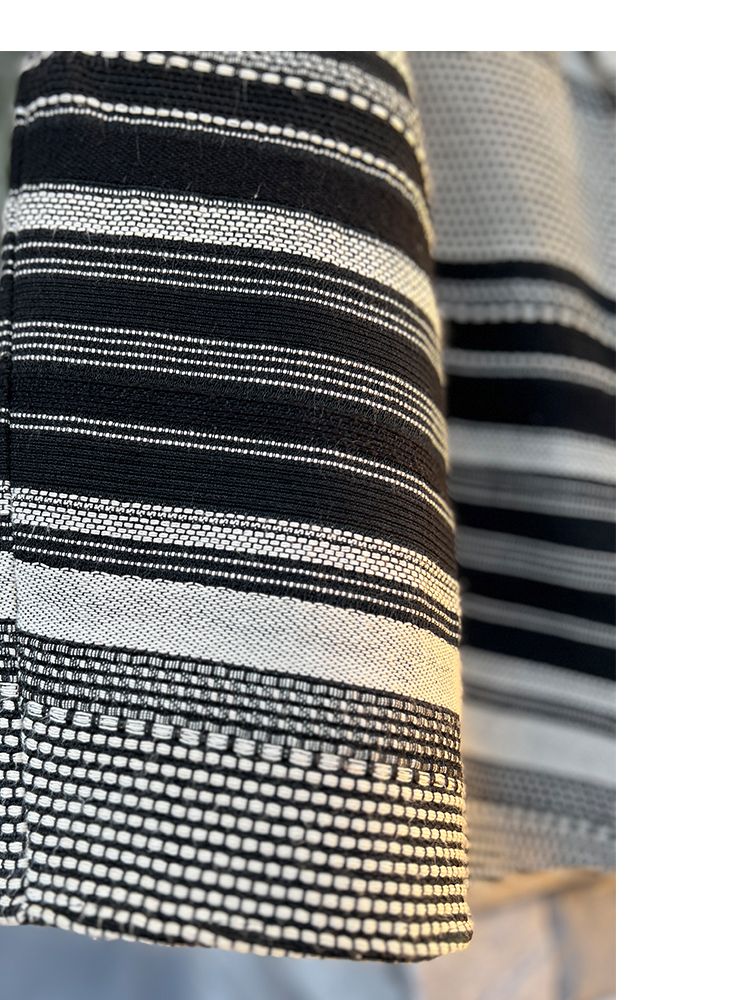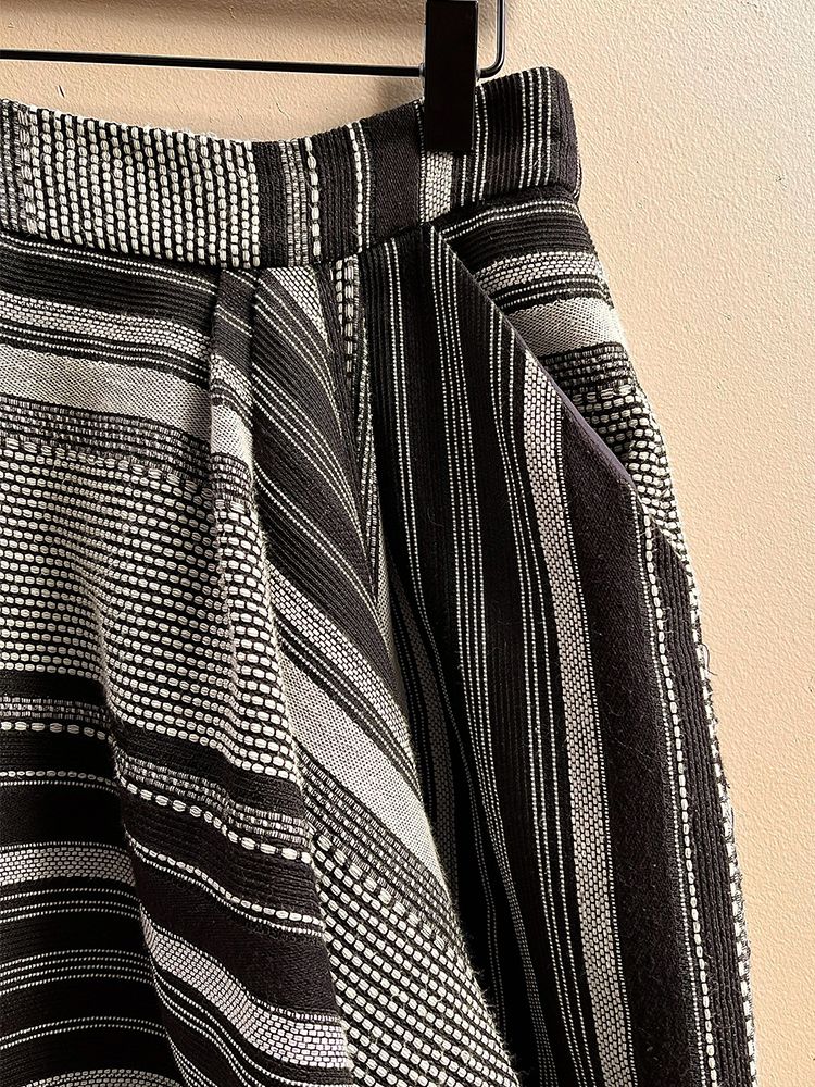 블랙, 멀티 스트라이프 패턴직조 원단에 언발란스 핀턱디테일 미니기장