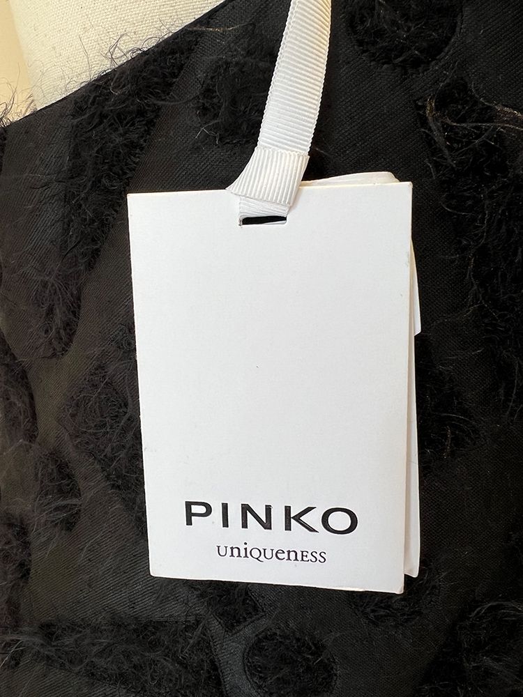 핀코 블랙 자가드 패브릭 미니드레스
