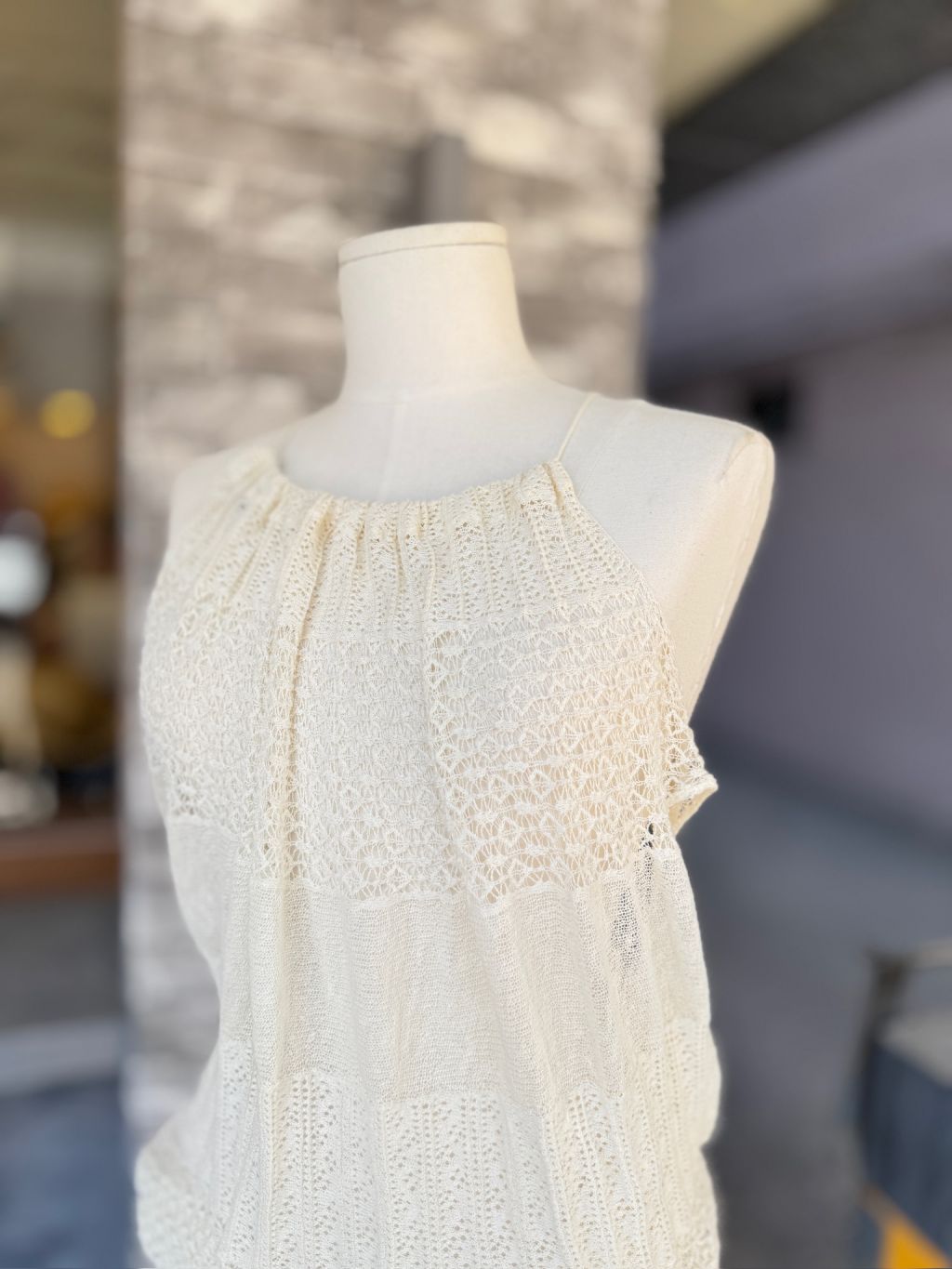 - 홀터넥 스타일의 블라우스 디자인입니다.