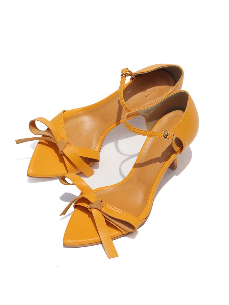 루즈한 리본장식 디자인의 스트랩 샌들로 포인트를 준 매력적인 발목스트랩 샌들입니다. 와이드한 리본장식이 주는 여성스러운 무드의 샌들로 과하지 않으면서도 포인트가 되는 스타일입니다. 세련된 포인티드 토 쉐입은 세번의 수정을 거친 패턴으로 착용했을 때 더욱 빛을 발하는 차별화된 슈즈입니다.